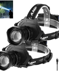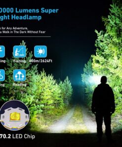 Led Rechargeable Headlamp, 100000 Lumens Head Lamps Outdoor Rechargeable, Bright Headlamps for Adults with 5 Modes & Ipx7 Waterproof 90° Adjustable Lamp Camping