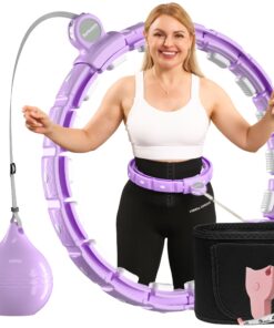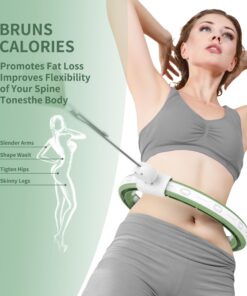 Weighted Workout Hoop for Adult Weight Loss – 48″ Fit Hoop Plus Size, Quiet Fitness Circles with Waist Trainer Belt and Body Tape Measure – Abs Exercise Equipment for Home