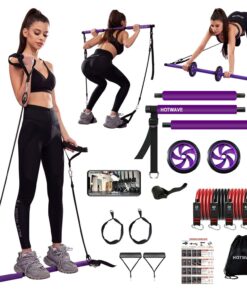 Pilates Bar Kit with Resistance Band, Multifunctional Yoga Pilates Bar, Portable Home Gym Pilates Resistance Bar Kit for Exercise Fitness Equipment for Women & Men Home Gym Yoga Pilates