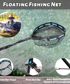Floating Fishing Net, Rubber Coated Fish net for Easy Catch and Release, Fishing Nets Freshwater for Bass, Trout, Walleye, Kayak, Folding Landing Net for Easy to Carry and Storage