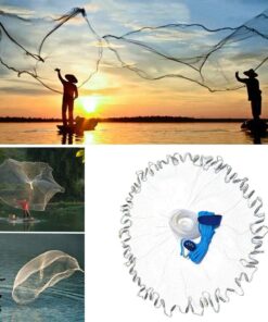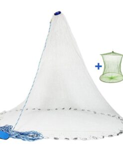 Handmade American Saltwater Fishing Cast Net with Heavy Duty Real Zinc Sinker Weights for Bait Trap Fish 4/6/8Ft Radius, 3/8 Inch Mesh Size