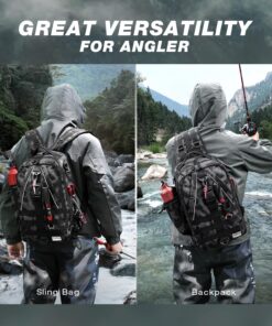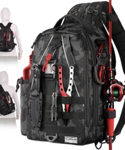 Fishing Backpack Tackle Sling Bag – Fishing Backpack with Rod Holder – Tackle Box Fly Fishing Gifts for Men Women