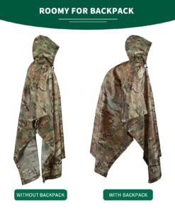 Military Rain Poncho, Camouflage RainCoat Outdoor Waterproof Lightweight