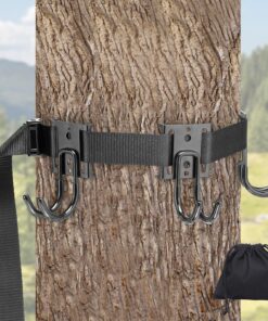 Tree Stand Gear Hangers with 3 Metal Hooks – Thick Strap Bow Hanger for Hunting with Metal Buckle, Arrows Bag Archery Equipment Holder, Hunt Deer Treestand Saddle Accessory Kit