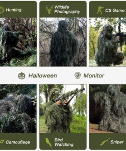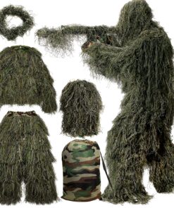 5 in 1 Ghillie Suit, 3D Camouflage Hunting Apparel Including Jacket, Pants, Hood, Carry Bag Suitable for Unisex Adults/Youth (M/L/XL/XXL)