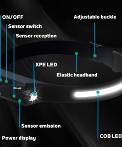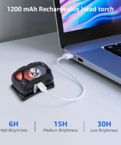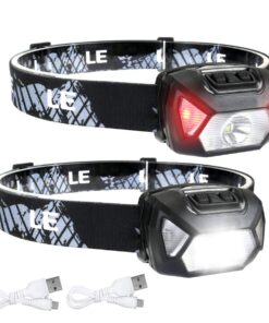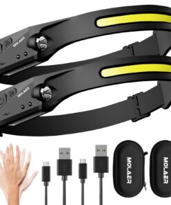 LED Headlamp Rechargeable Flashlight, 2-Pack 230° Wide Beam Headlight with Motion Sensor, Lightweight, Weatherproof, 2 Light Source Head Lamp for Camping Hiking Running Outdoor – Adults and Kids