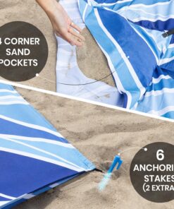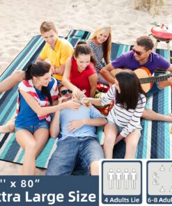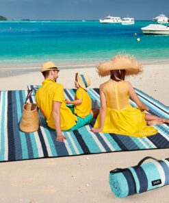 Beach Blanket Waterproof Sandproof – Large Oversized Sand Free Beach Mat Fits Up to 10 People w/Stakes, Storage Bag – Essentials for Beach, Picnic, Concert