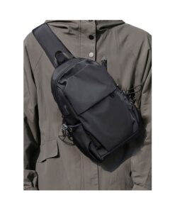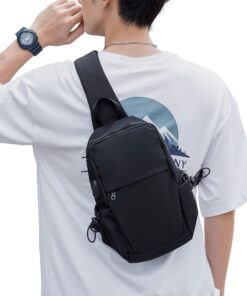 Small Black Sling Crossbody Backpack Shoulder Bag for Men Women, Lightweight One Strap Sling Bag Backpack for Hiking Walking Biking Travel Cycling USB Charger Port-Nylon