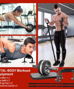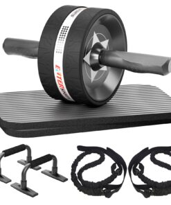 Ab Rollers Wheel Kit, Exercise Wheel Core Strength Training Abdominal Roller Set with Push Up Bars, Resistance Bands, Knee Mat Home Gym Fitness Equipment for Abs Workout