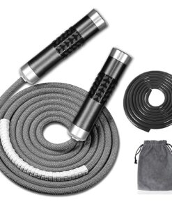 Weighted Jump Rope for Workout Fitness(1LB), Tangle-Free Ball Bearing Rapid Speed Skipping Rope for MMA Boxing Weight-loss,Aluminum Handle Adjustable Length 9MM Fabric Cotton+9MM Solid PVC Rope