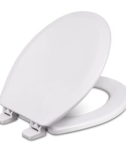 Round Toilet Seat Soft Close, Closed Front with Cover, Molded Wood, Made in the USA, 700SC-301, Crane White (Cotton/Bright)