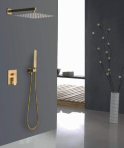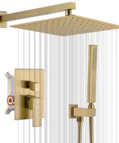 Champagne Bronze Rain Shower System with 12 Inch Shower Head and Handheld Bathroom Wall Mounted Brushed Golden Shower Set Contain Shower Faucet Mixer and Brush Gold Trim Kit (Valve Included)