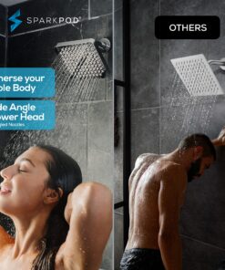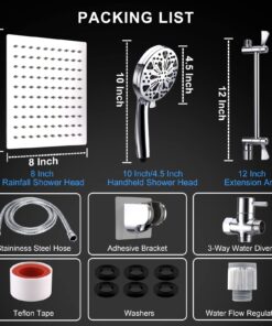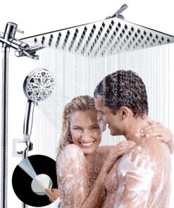 12″ High Pressure Rain Shower Head, Shower Head with 11 Inch Extension Arm, 10-mode Handheld Shower Head with Holder/Hose, Built-in Power Wash to Clean Tub, Tile & Pets, Flow Regulator, Chrome