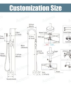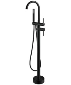 Floor Mount Bathtub Faucet Freestanding Tub Filler Standing High Flow Shower Faucets Shower Mixer Taps, Swivel Gooseneck Spout with Cylinder Handheld Matte Black