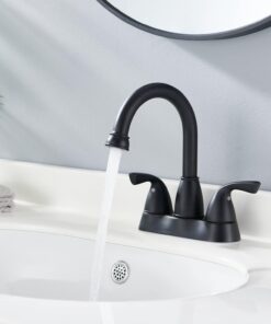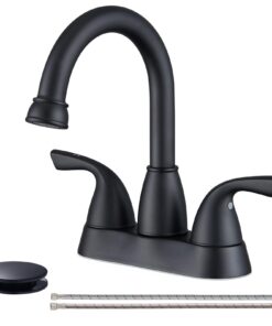 Bathroom Faucets for Sink 3 Hole, Black Matte 4 inch Widespread Centereset 2 Handles Sink Faucet w/Pop-up Drain & Supply Hoses, Lead-Free Lavatory Faucet for Bathroom Sink Vanity RV Farmhouse Sink