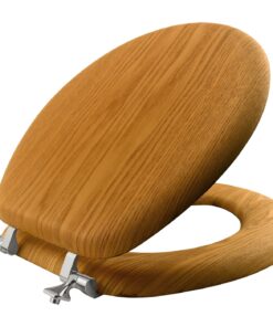 MAYFAIR 9601CP 378 Toilet Seat with Chrome Hinges, ROUND, Natural Oak Veneer