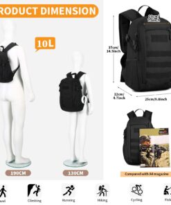 Dimensions: 9.8″W x 14.6″H x 4.7″D. It is a mini backpack and it is only 10L. Some customer even says tiny. It fits for small person. Any one who mind the size,pls choose a larger one.Main pocket: fit for iPad4, 10″ tablet, Side Pockets: can fit 500ml bottle Front pocket: can fit 5.7″ phone. High-intensity military-style specifications nylon, scratch-resistant, Not easy to fade.Water-resistance, to ensure the strength of the product while ensuring long-term use in wet environments, or will not rot after the invasion of waterMOLLE external expansion system designed to be used in combination with other equipment, you can load pockets, water bottle bag, accessory kits and otherBag’s body parts using high-strength nylon buckle, and Baoshen same color, cold, crashworthiness, not cracking, deformationSuitable for fitness, outdoor travel, hiking and other outdoor activities.THIS ITEM IS NOT INTENDED FOR USE BY CHILDREN 12 AND UNDER.