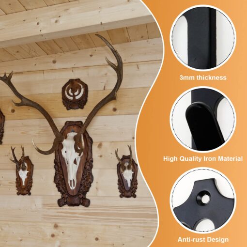 - Heavy Duty: european deer mount hanger is 3.5″ H x 1.5″, which made of high quality iron to hold up to 35 pounds, heavy-duty material will not bend and use for long time.