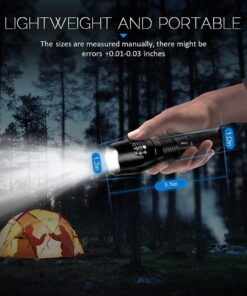 - [ADVANCED DESIGN]: Military grade aluminum alloy & steel with hard-anodized finish technique; anti-abrasive, drop-resistance and waterproof tactical flashlight. Durable and portable.