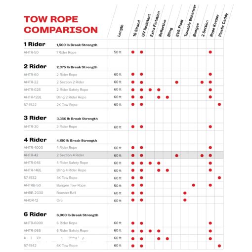 Be the first to review “2 Section Tow Rope | 1-4 Rider Towable Tube Rope, Dual Sections, 4,150lb Break Strength, 50 ft and 60 ft Options, Rope Keeper Included” Cancel reply