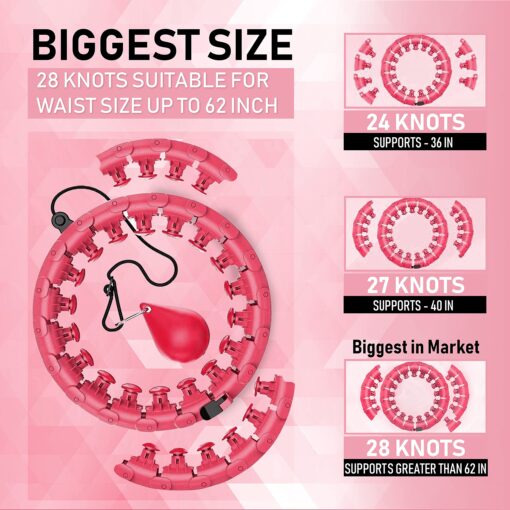 - [Detachable design and plus size suitable] Get rid of the need to buy two waist hula hoop because we are introducing 28knots detachable knots infinity hoop, that is suitable for plus size adults and supports up to 62 inches waist size.