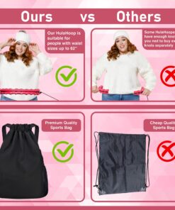 - [Carry in one of the Bestselling Sports bag] Get the smart weighted Hula Hoop bundled with an amazing black drawstring sports bag which not only allows you to carry the extra large Hula hoop but your additional exercising equipments as well. This sports bag makes it easy to hold weighted hula hoop for kids and adults, getting rid of the hassle to find an additional bag to carry Hula Hoop exercise belt. Take your Pilate ring anywhere and enjoy Hula hooping with friends, family or at gym.
