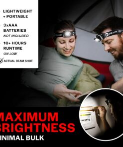 - SUPER BRIGHT – Experience powerful hands-free LED camping lights that generate a brilliant, long-lasting beam with daylight color and definition, boasting a runtime of up to 10+ hours on the low setting making it the perfect work headlamp.