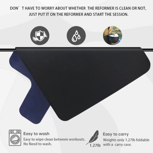 - 【Stay Put Firmly】This product helps you maintain your position on the reformer and collect sweat. It will not move and stays put. The non-slip backing keeps the mat in place, and it is comfortable, elegant, clean, and beautiful.