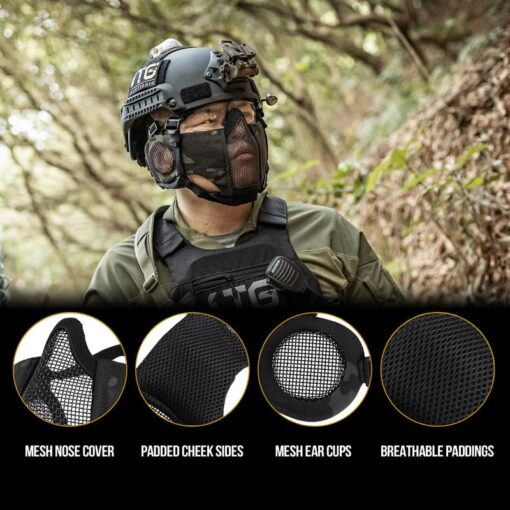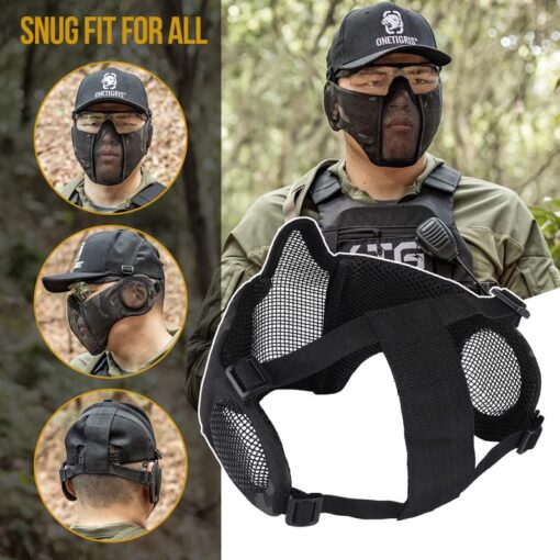 - OneTigris RAGE Foldable Mask: Mesh ear protector with adjustable straps, great for CQB matches