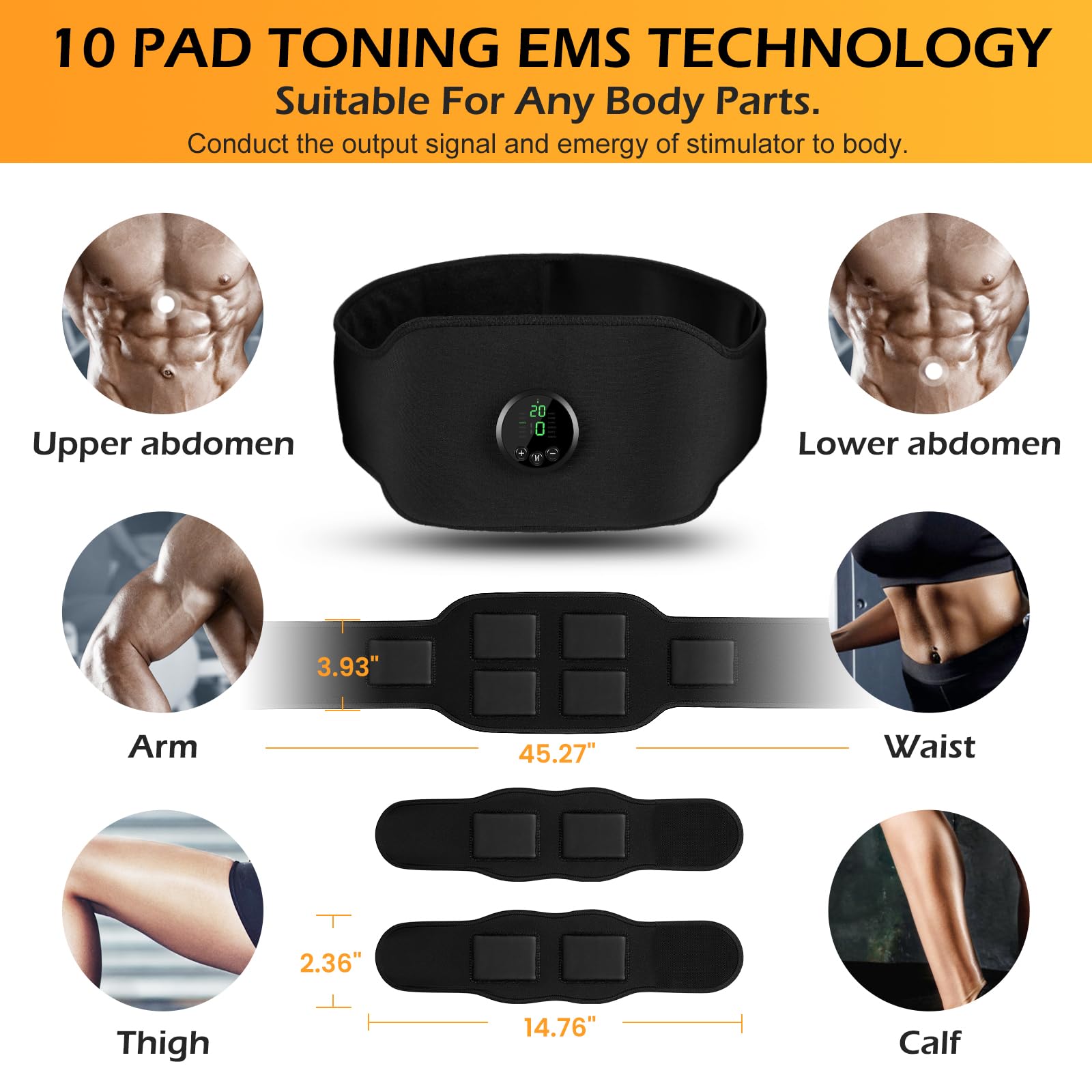 Powerful Training Machine – KFC ab stimulator is a powerful abs workout equipment that helps you to quickly strengthen your abs, lose weight and alleviate lower back pain during exercise. This vital flex core ems muscle stimulator has 12 modes and 19 intensity levels, perfect for your multiple needs.Advanced EMS Technology – The abs stimulator is an excellent stomach fat burner. The ab stimulator muscle toner utilizes electronic pulse technology to generate muscle contractions by sending signals to the motor nerves. This method engages more muscle fibers, maximizes muscle strength, and improves training efficiency and fitness. Additionally, this KFC muscle stimulator machine can relieve muscle soreness and pain caused by exercise or normal household activities, promoting muscle performance.Portable and Comfortable – This muscle stimulator is made with premium materials, safety and durability. KFC ems sculpting machine is no need for complicated exercises, easy to use, and can be trained anytime, anywhere. Notice: KFC electric muscle stimulators has to be in direct contact with your skin when you are using it, otherwise, the ab machine can’t work normally.Effective and Adjustable – Workouts for 20 minutes twice a day with this KFC abs machine. This abs stimulator abdominal will help you resulting in fast muscle-building and sculpting of perfect abs and you will see the change within 3 months. The length of the abs simulator is 46 inches, features a velcro strip and fits a 25 to 46-inch waist. The arm belt fits a 9.44 to 14.96-inch arm size, suitable for men and women.Premium Service – We promise that the quality and effectiveness of the KFC electric abdominal muscle stimulator are guaranteed. If you encounter any problems during use, please contact our customer service team, and we will do our best to assist you. Additionally, we offer return and exchange services to ensure a worry-free shopping experience.
