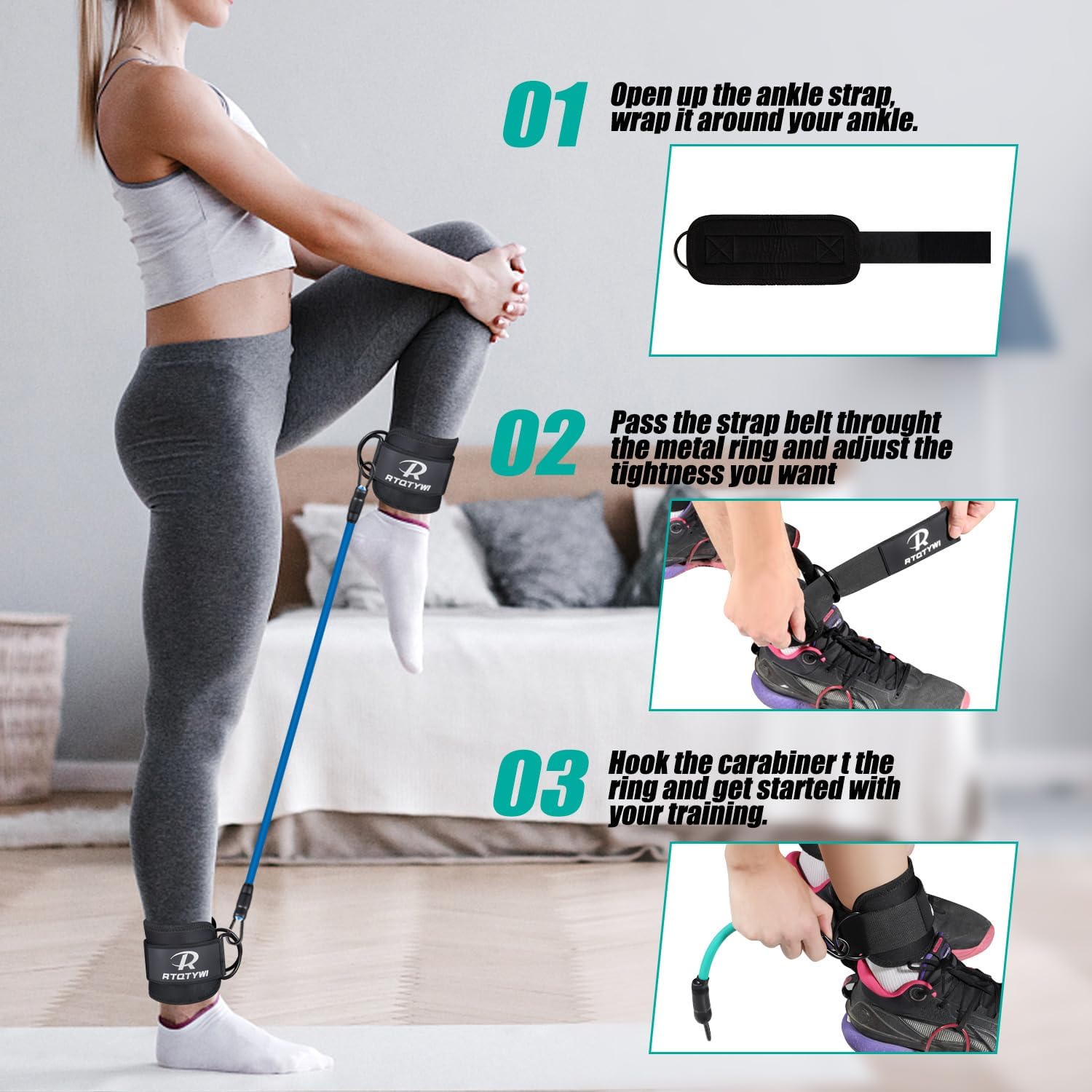 - 【A GOOD HELPER FOR PERFECT BUTTOCK TRAINING】This ankle resistance band set includes 3pieces Tube bands, 1pair ankle Straps and mesh carrying case to allow you to perform the widest variety of resistance training exercises possible at home.You can also take your bands to Gym, Office, and even workout on vacation!