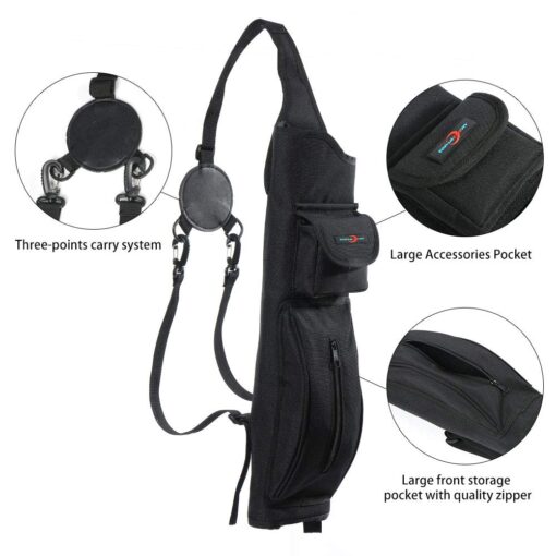 - Three-points carry system. Lightweight and comfortable. Easy to carry and take off, Accommodates arrows of any length.
