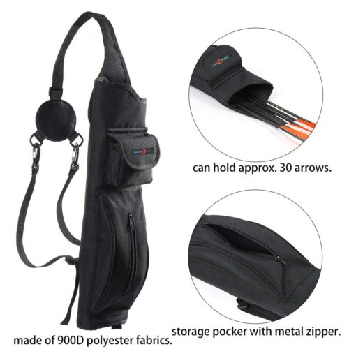- Large front storage pocket with quality zipper. It can hold your arm guard, arrows puller and other archery accesories.