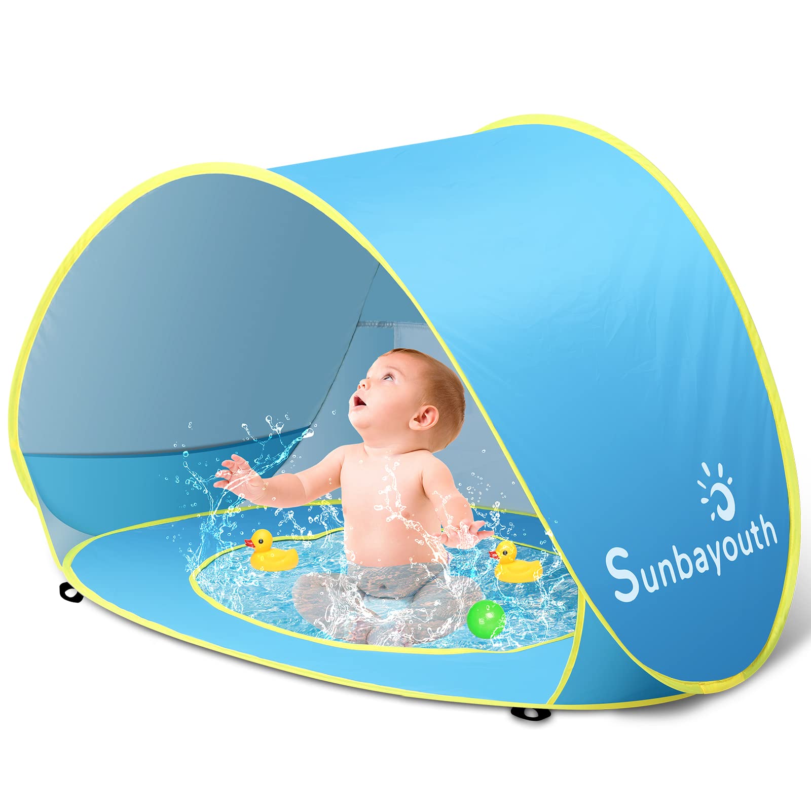 - [Design Concept]: Our Baby beach tent is designed for children under 3 years of age. At the bottom of the mini pool can allow baby play in the water with the baby tent. instead of go to the seaside, parents can have extra time to enjoy the beach trip.