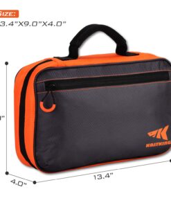 - Versatile design – The KastKing Bait Boss tackle bag was designed with the flexibility to adapt to your fishing needs for both freshwater and saltwater. Customize your Bait Boss with soft baits, terminal tackle, tools, and leader line to target bass, crappie, pan fish, red fish, flounder, or just about any species. Perfect for a short trip to your local pond or a day of fishing on your buddy’s boat. (Product dimensions – 13.4” x 9” x 4”)