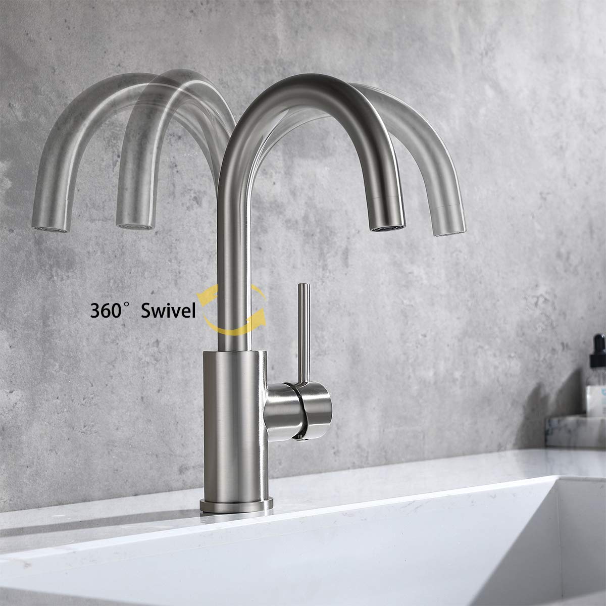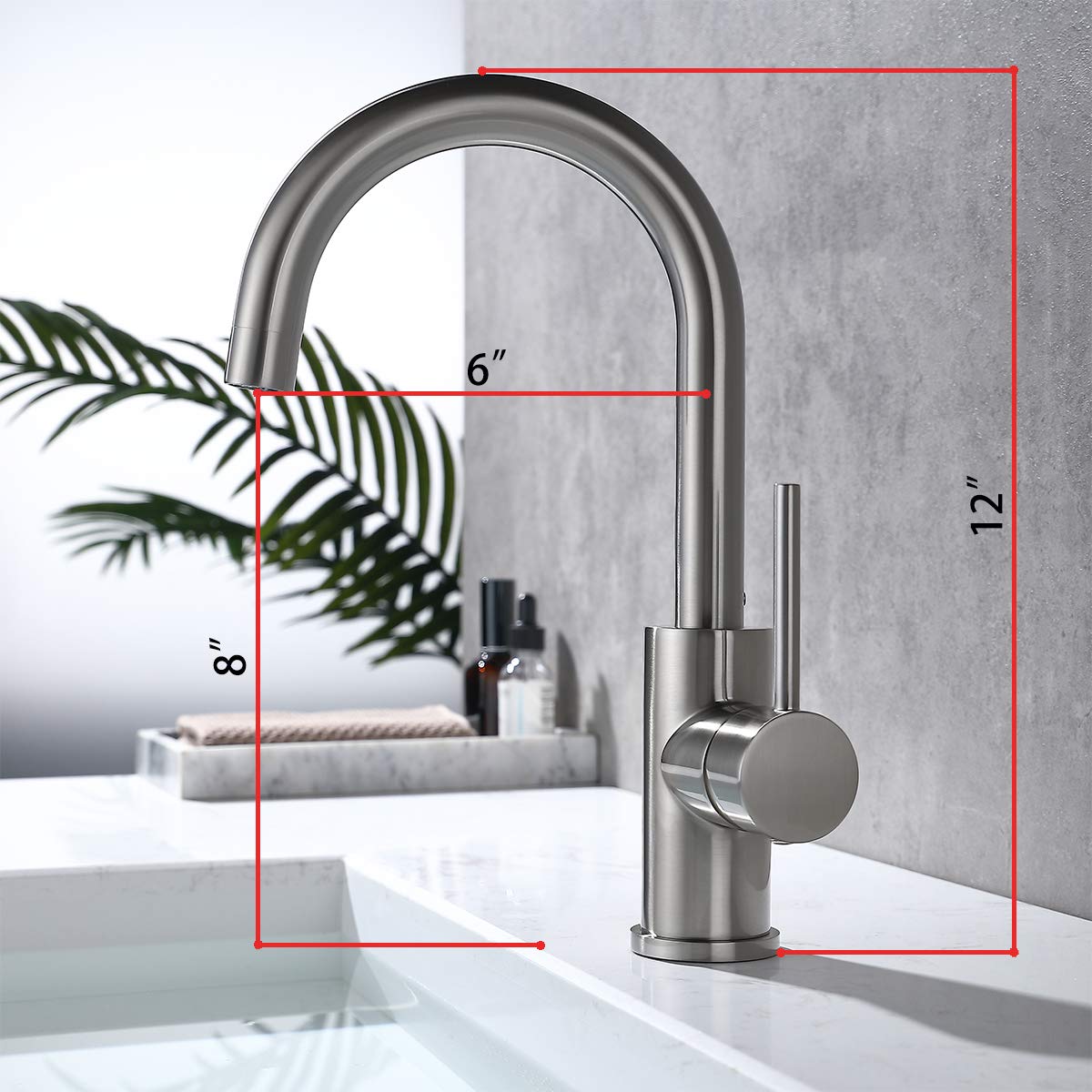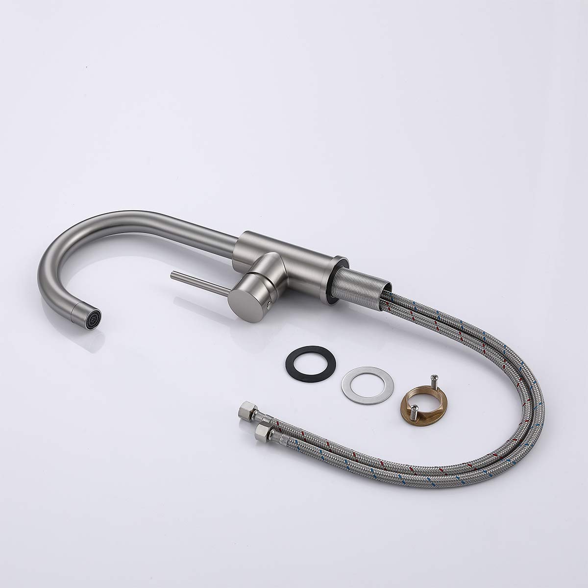 - Brushed nickel single handle kitchen faucet resists fingerprints and water spots, comfortable life you needed.