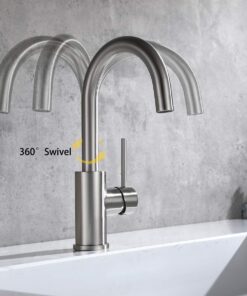 - High-arch spout and 360° degree rotation provides maximum sink space for single sink. Spout height: 8” Spout reach: 6” Over height: 12”