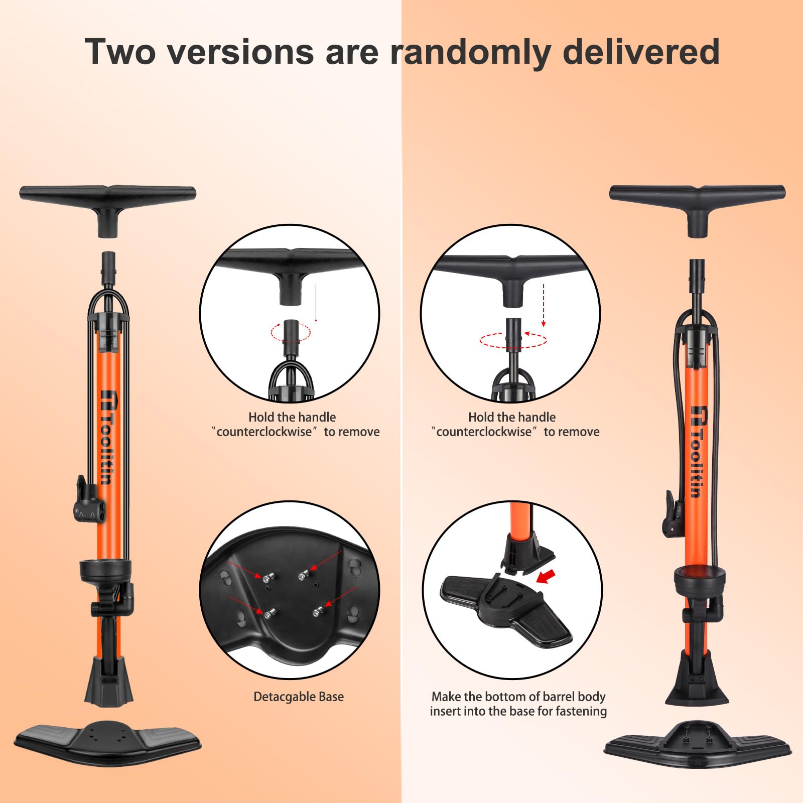 - 【Widely Applications】TOOLITIN foot bike pump Compatible with presta and schrader valves,it can inflate bicycles, electric bicycle, motorcycles.We prepared other inflatable accessories for you. You can also inflate air cushions, swimming rings, basketballs, footballs, lifebuoys, air cushions, and any inflatable ball toys.