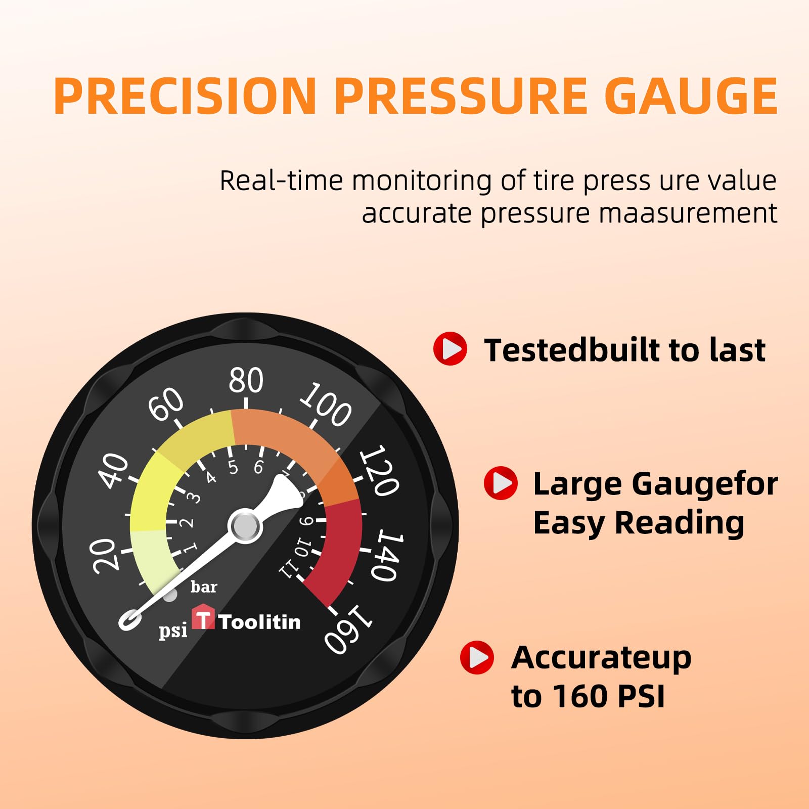 - 【One-piece Aluminum Barrel】The one-piece aluminum barrel has a better inflation effect than the steel barrel, and TOOLITIN’s air barrel has more air storage, and the pumping will be completed faster.