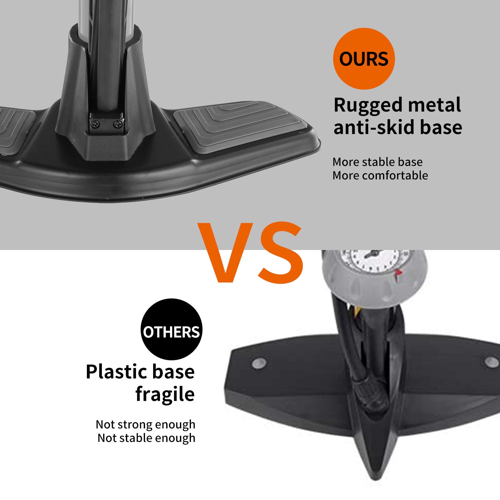 - 【Wider and Thicker Base】Made of high-quality steel, it is stronger and more stable than other plastic bases. The surface of the base also adds a rubber anti-skid pad to make you more stable when inflating.