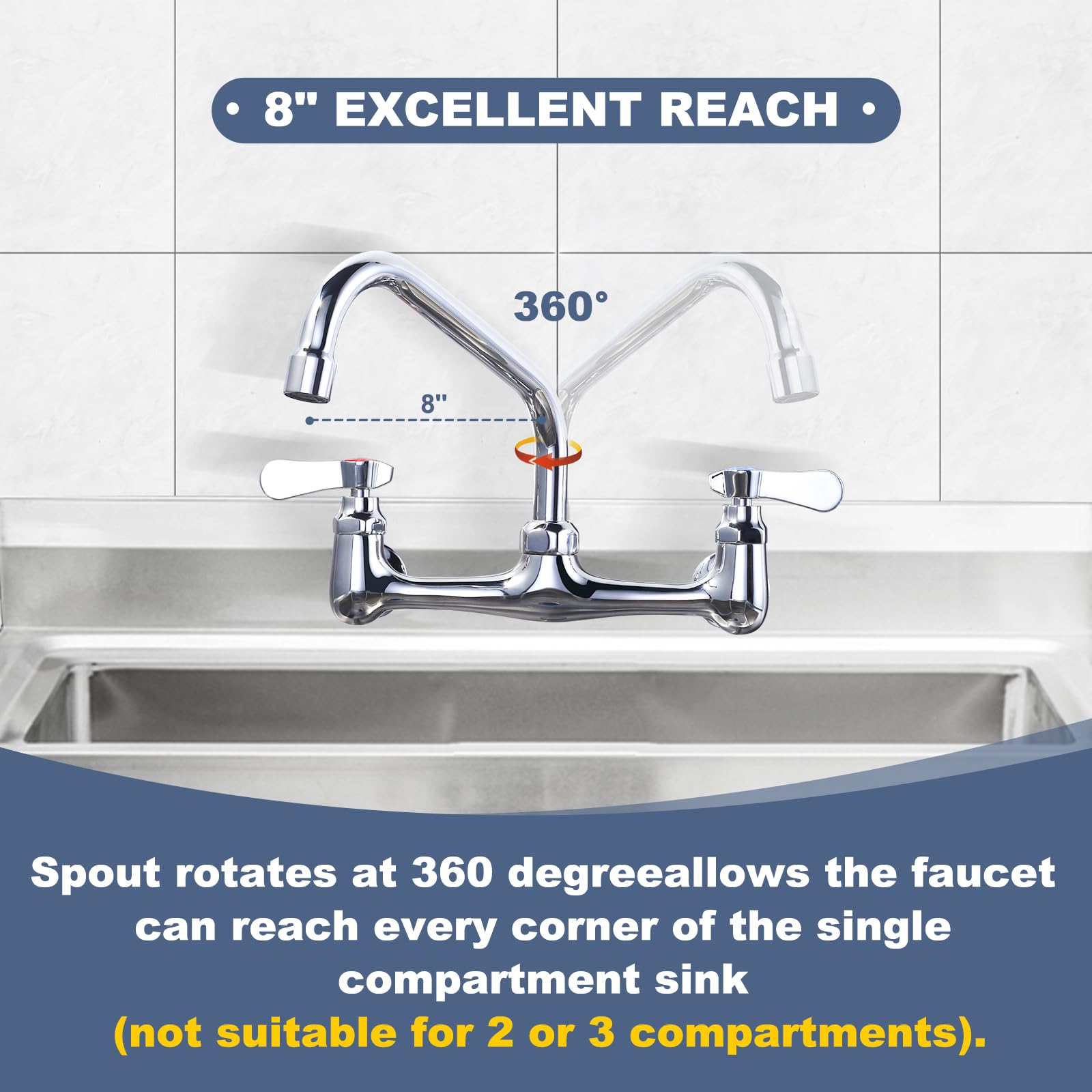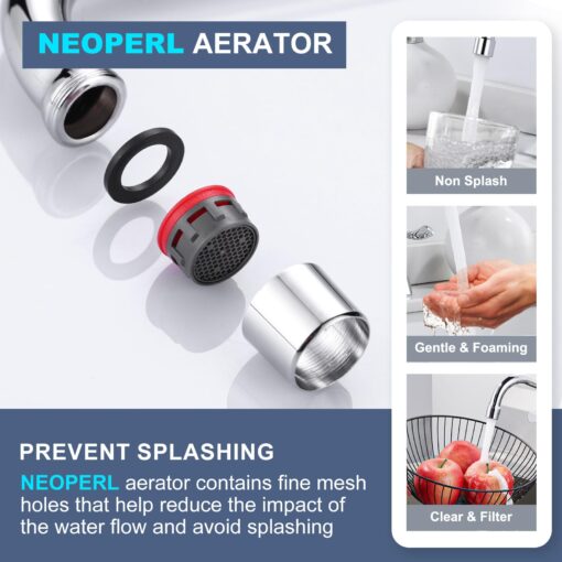 - 【8 Inch 360 Degree Swivel Spout】Utility sink faucet spout can be rotated 360 degrees, it allows the water reaches every corner of the kitchen sink as possible, suitable for sinks with compartments, Spout is equipped with a bubbler, the water is soft, does not splash.