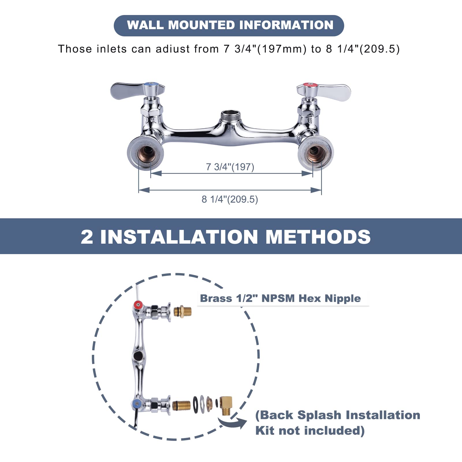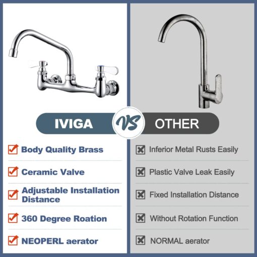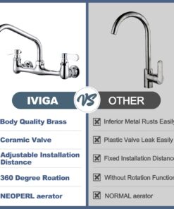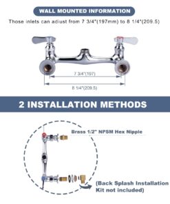 - 【Easy DIY Installation】8″ adjustable center distance (available for hole distance:7.75″-8.25″), Kitchen sink faucet is designed to fit 2-hole, wall-mounted configurations,the package included all mounting hardware,you may install this faucet less than following the manual.