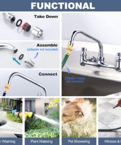 - 【Functional Washing】You can connect the garden hose on the spout to wash your ground, car and the pet. For daily use the high pressure pre-rinse sprayers can easily be stretched to any corner and efficiently rinse cutlery with strong water pressure.(ADAPTER AND GARDEN HOSES NOT INCLUDED PACKAGE).