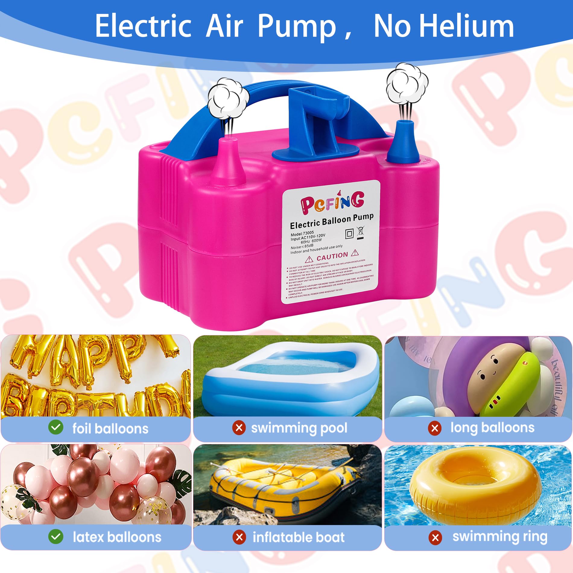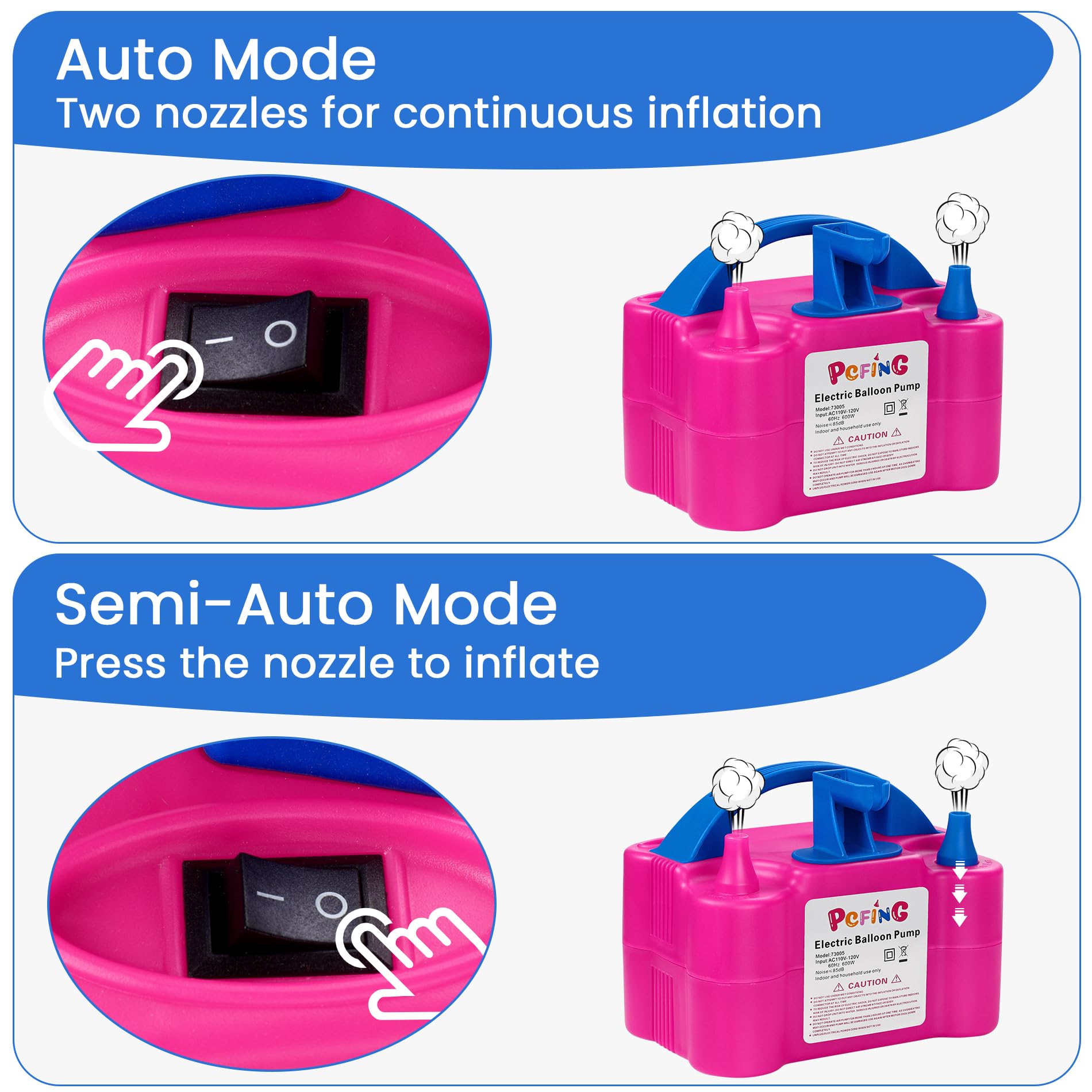 - 2 NOZZLE SIZES — Inflate different sized balloons thanks to the practical dual-nozzle design. Simply attach your balloon and choose your inflation mode! This electric balloon pump fit to latex balloon and decorative balloon. Double pump, balloon air pump.