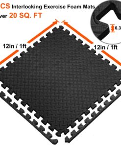 Be the first to review “Exercise Mats Puzzle Foam Mats Gym Flooring Mat Cover 20 SQ.FT Interlocking Foam Mats with EVA Foam Floor Tiles for Home Gym Equipment Workouts (20pcs Black Exercise Mats)” Cancel reply