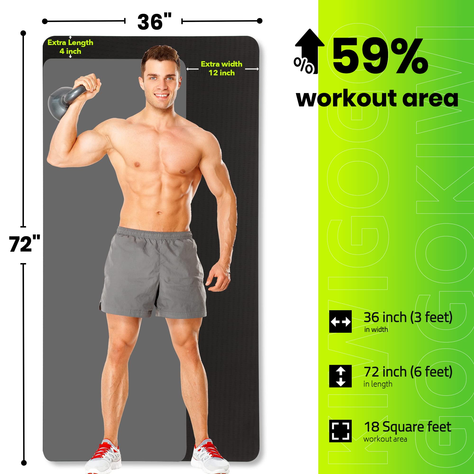 - 【Extra Space for Extra Comfort】 With a size of 72×36 inches, our extra large yoga mat is 50% wider than traditional mats, offering ample space for men and plus-size women to move freely and comfortably during their workout.