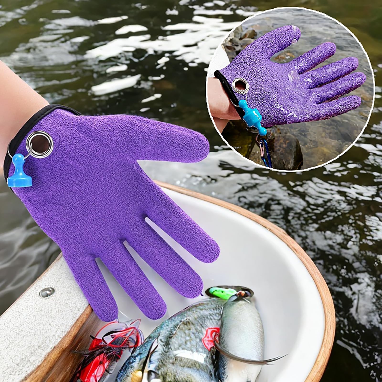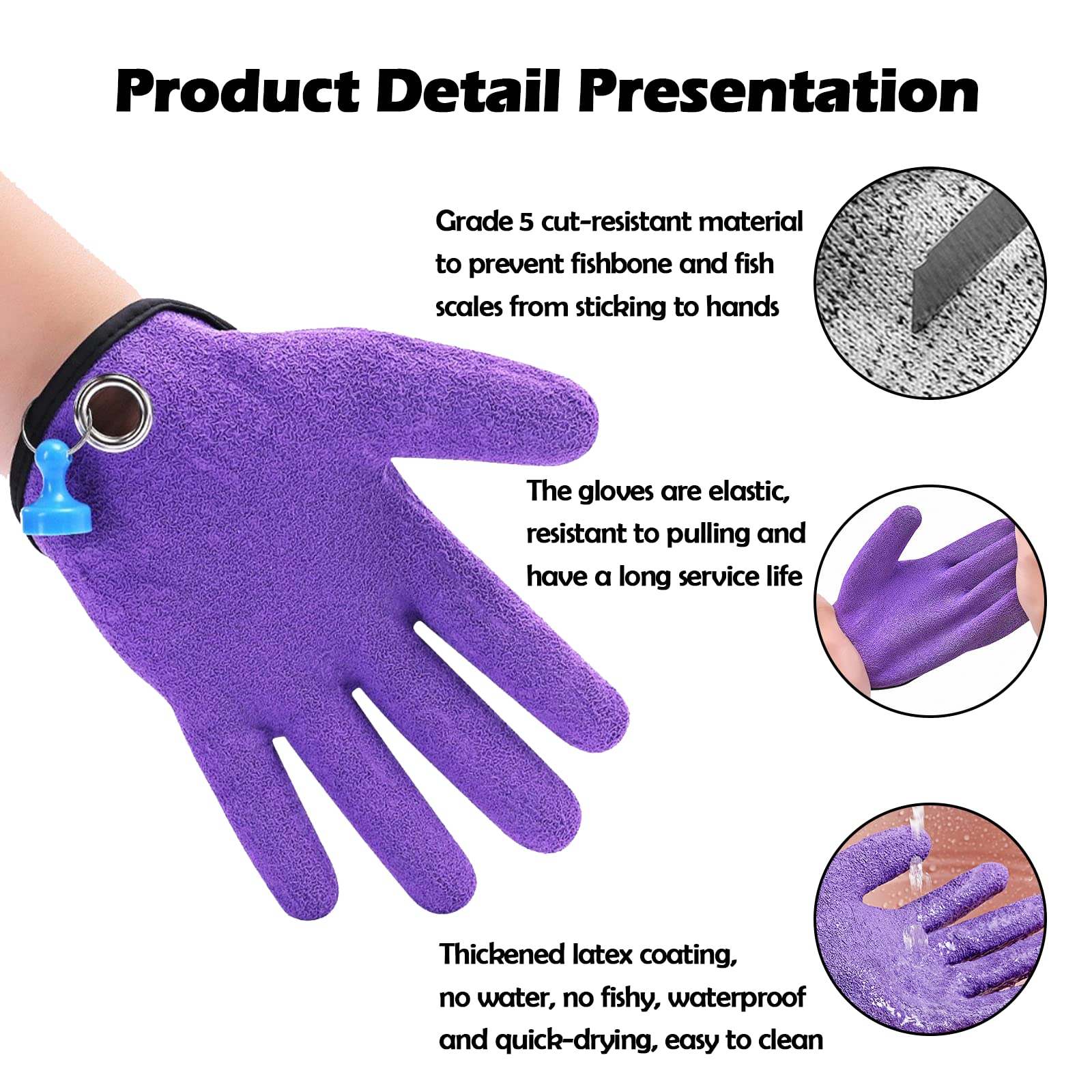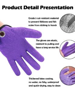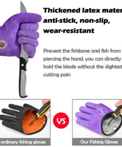 - 🐠【Slip-resistant coating】Latex anti-skid coating, PE surface dipped in latex material, irregular wrinkled skin texture, greatly improved anti-slip, anti-skid and wear-resistant. At the same time, it prevents the fishbone and the fish from sticking to the hands and does not touch the water, does not stick to the fishy smell, is waterproof and quick-drying, and is easy to clean.