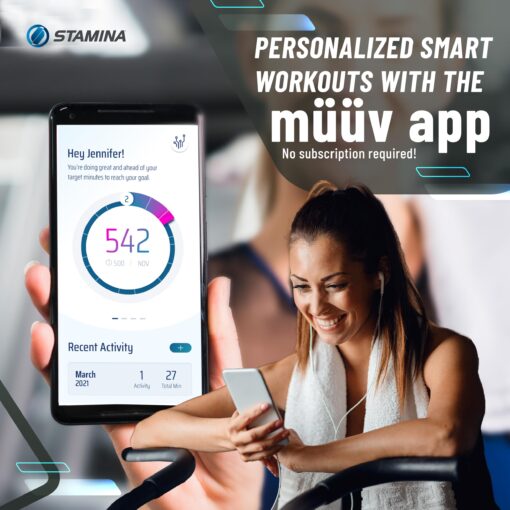 - SMART WORKOUT APP – Experience connected fitness with this home gym equipment with the müüv app. With smart guided coaching, exercise demo videos, personalized workouts, assembly videos, and more, müüv provides the best workout and fitness experience with your Stamina Trampoline.