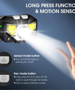 - 🏃 ✅Long Press Function and Motion Sensor: Unlike the old version, LHKNL headlamp has added a long press function. In any mode, if you hold the key mode button for 3 seconds, you can turn off the light directly, no longer need to cycle all modes. It also added motion sensor mode, you can easily turn the lights ON/OFF by waving your hand, which is more convenient and avoids soiling the headlamp when your hands are dirty.