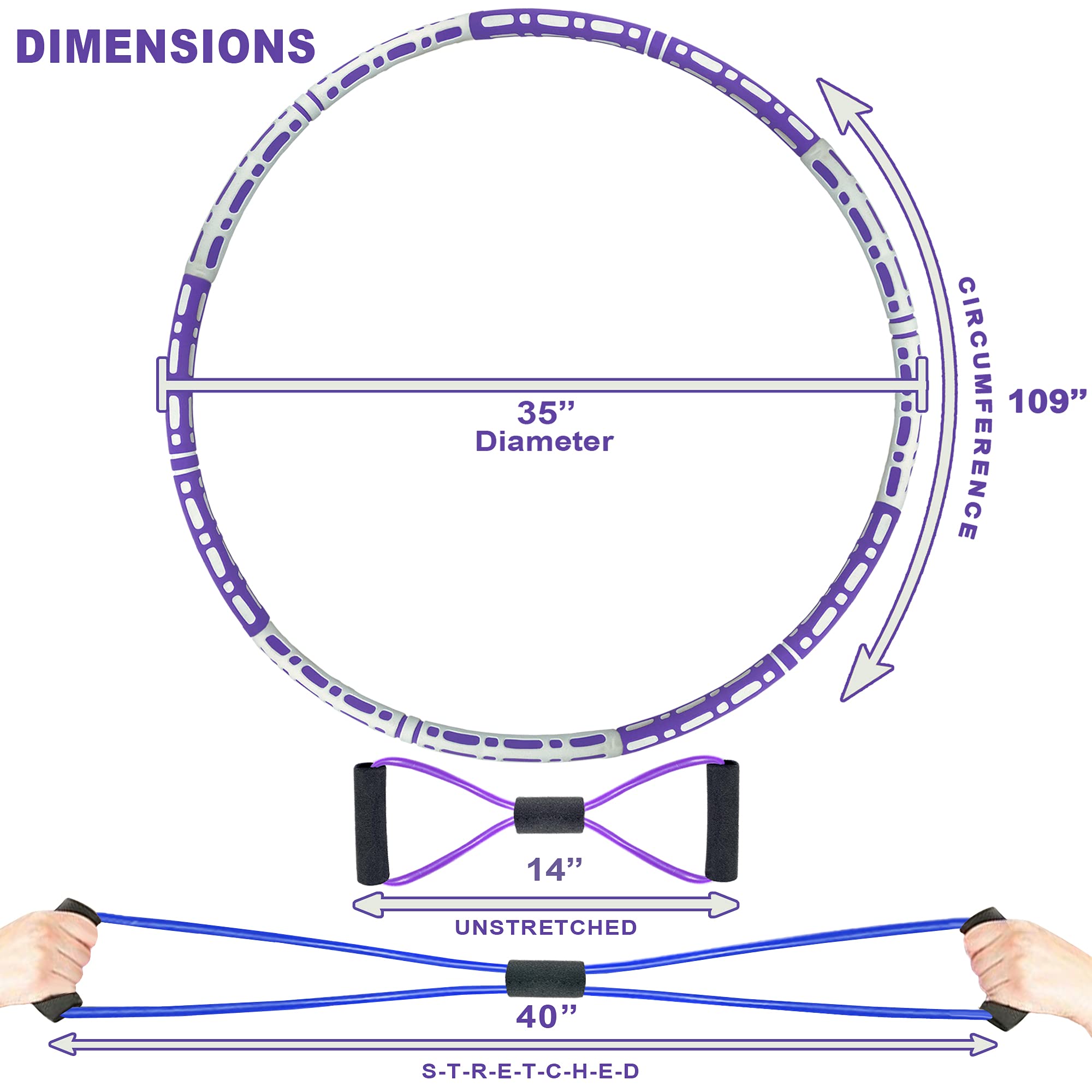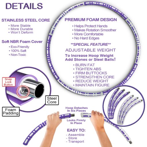 Hula Hoop for Adults – Weighted Hoola Hoop for Weight Loss – Exercise Hula Hoop with Jump Rope and 8 Shape Latex Band – Soft Padded Hoops with Thicker Premium Foam for Workout